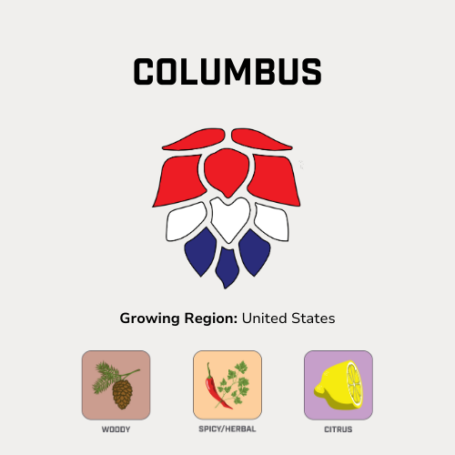 The exact lineage of the proprietary hop Columbus is unknown. It features a punchy hoppiness and deep, pensive aroma with understated citrus notes—perfect as a dual use hop.
