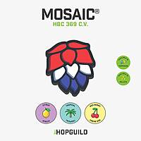 Mosaic® is an aroma hop brand developed by Hop Breeding Company (John I. Haas. and Yakima Chief Ranches) and released in 2012. Mosaic® offers a unique and complex blend of floral, tropical, fruity and earthy characteristics that translate very favorably into several styles of beer. Mosaic® is the daughter of YCR 14 Simcoe® and a Nugget derived male.