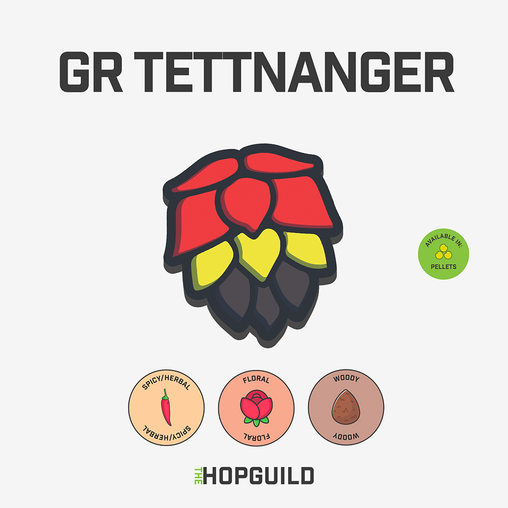 Tettnanger has a wonderful aroma that can be considered as floral, spicey, fruity and hoppy. We love the blend of cedar, tobacco and stone fruit, like characteristics we get from our selections from grower Locher Hopfen!